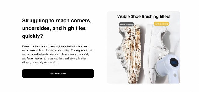 Rechargeable cordless spin scrubber that removes grime fast, saving time and energy on bathroom and kitchen cleaning